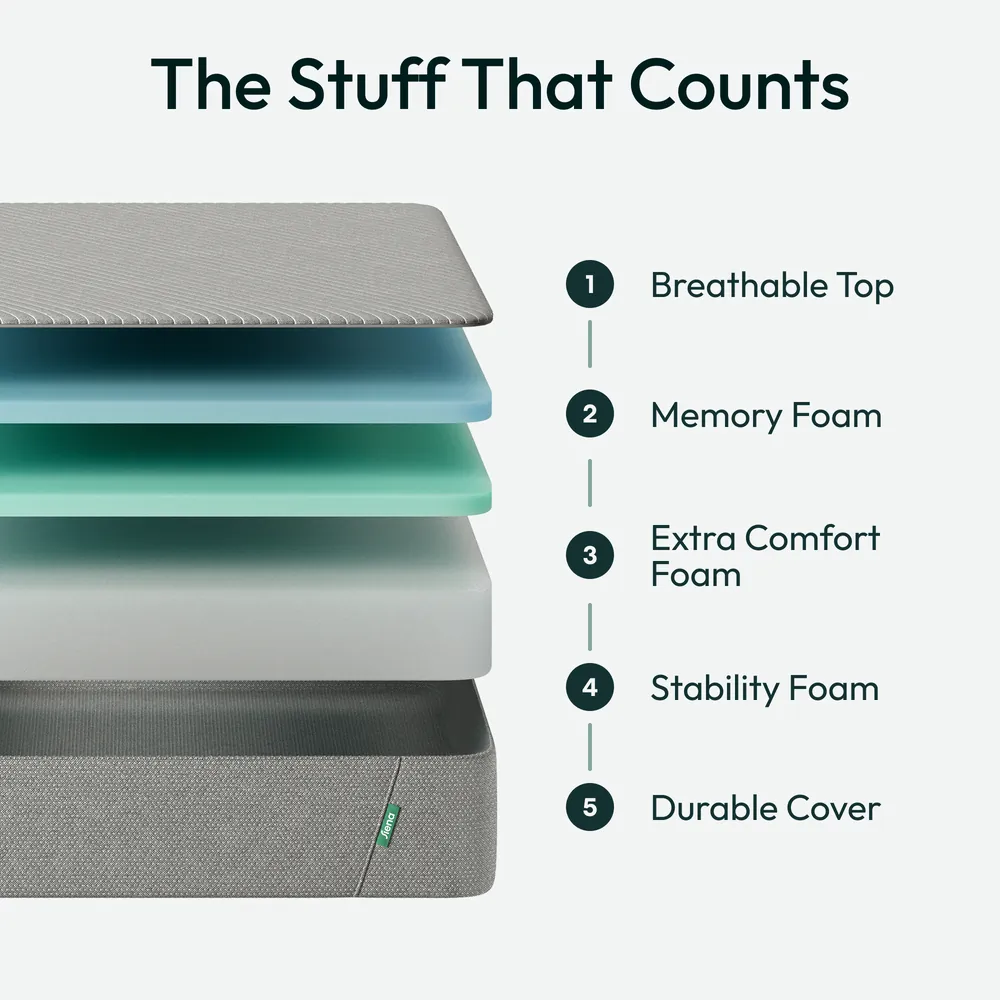 The Siena Signature Memory Foam Mattress features 12” and five layers – including 2” of contouring memory foam – for a comfortable, supportive sleep that doesn’t break the bank.